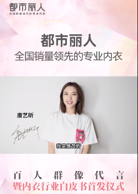 都市麗人百人群像代言暨內(nèi)衣行業(yè)白皮書首發(fā)儀式,驚喜來襲!超人氣專業(yè)演員唐藝昕將于7月3日親臨活動(dòng)現(xiàn)場,共同見證百人代言團(tuán)的誕生!