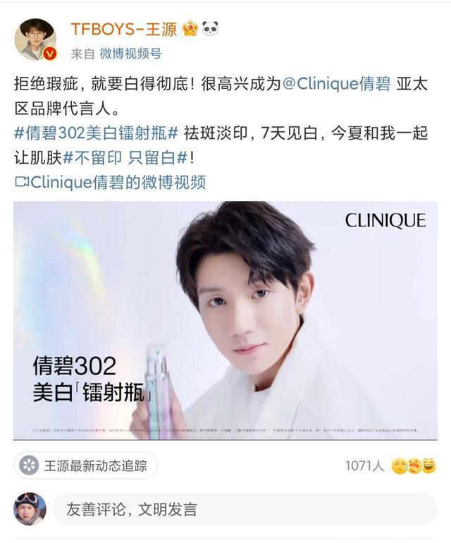 恭喜王源正式成為倩碧亞太區(qū)品牌代言人。
