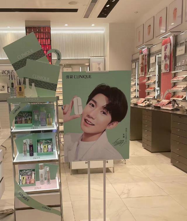 據(jù)悉,王源品牌代言人的身份還未官宣時,就有很多粉絲在倩碧線下專賣店看到了王源的海報。