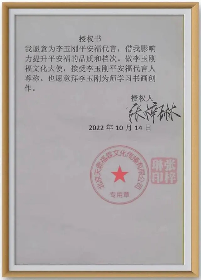 10月14日,國際超模、世界小姐張梓琳(明星代言公司)正式成為李玉剛創(chuàng)作的“平安福”代言,做平安福福文化全球形象大使,并拜李玉剛教授為師,學(xué)習(xí)書畫藝術(shù)創(chuàng)作。李玉剛,中國書協(xié)香港協(xié)會(huì)副主席、山東文化產(chǎn)業(yè)職業(yè)學(xué)院特聘教授、平安福創(chuàng)始人。