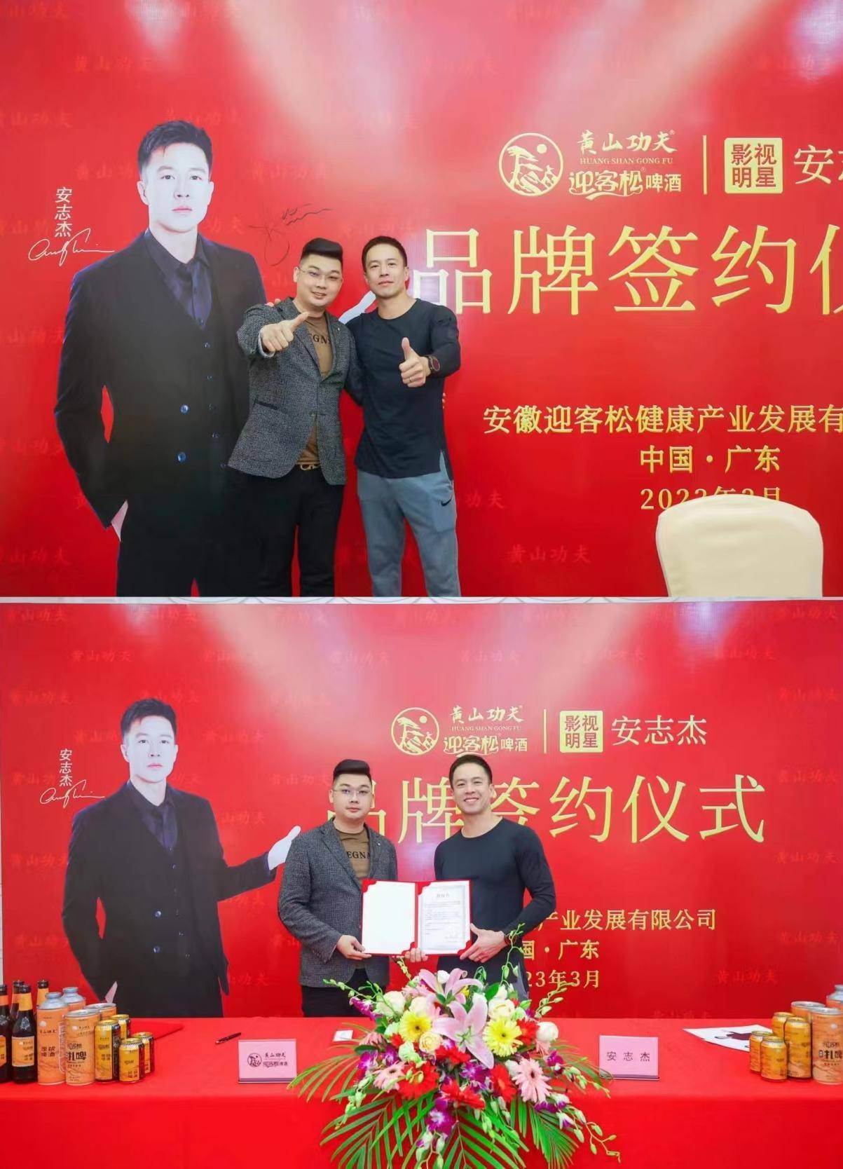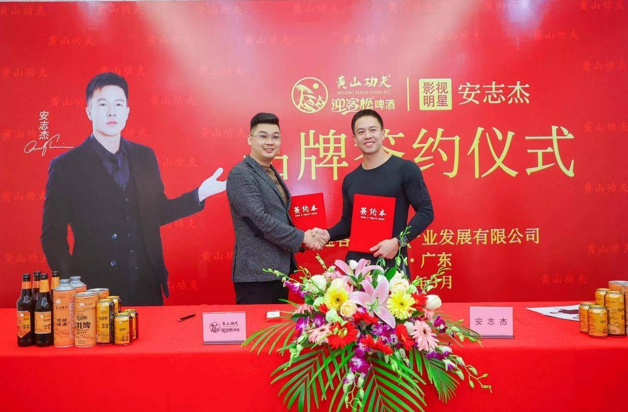 啤酒原漿品牌--黃山功夫迎客松品牌代言人安志杰簽約儀式圓滿舉行