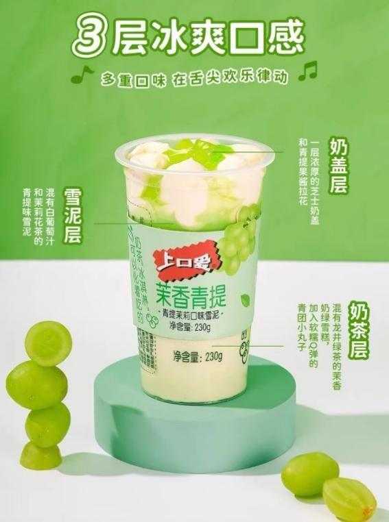 對此,上口愛推出了潮流新吃法,可以化著吃的“奶茶冰淇淋”——將奶茶和冰淇凌相結(jié)合,凍起來是冰淇凌,化了就是奶茶。