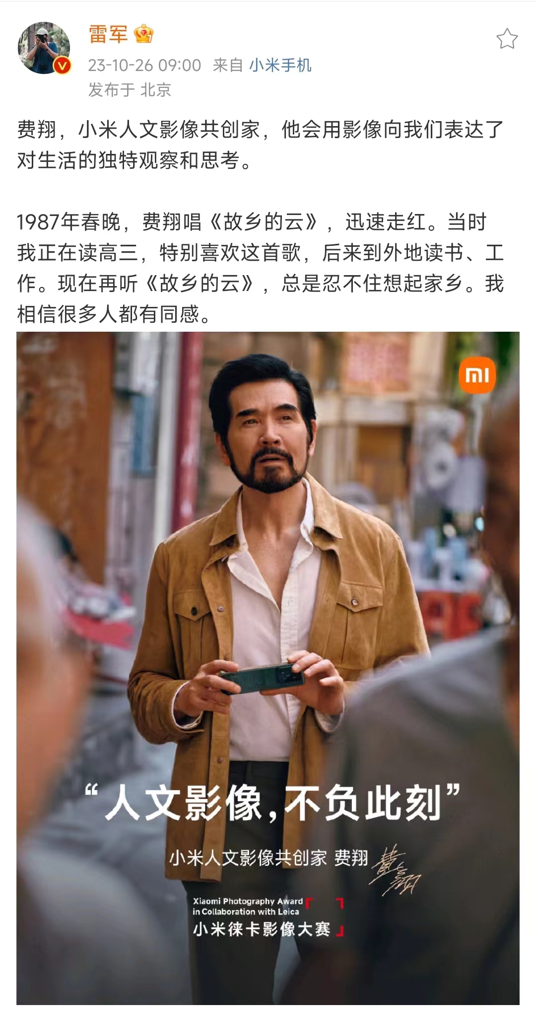 小米官宣費(fèi)翔成為“人文影像共創(chuàng)家”,“老牌頂流”代言手機(jī)已成為潮流