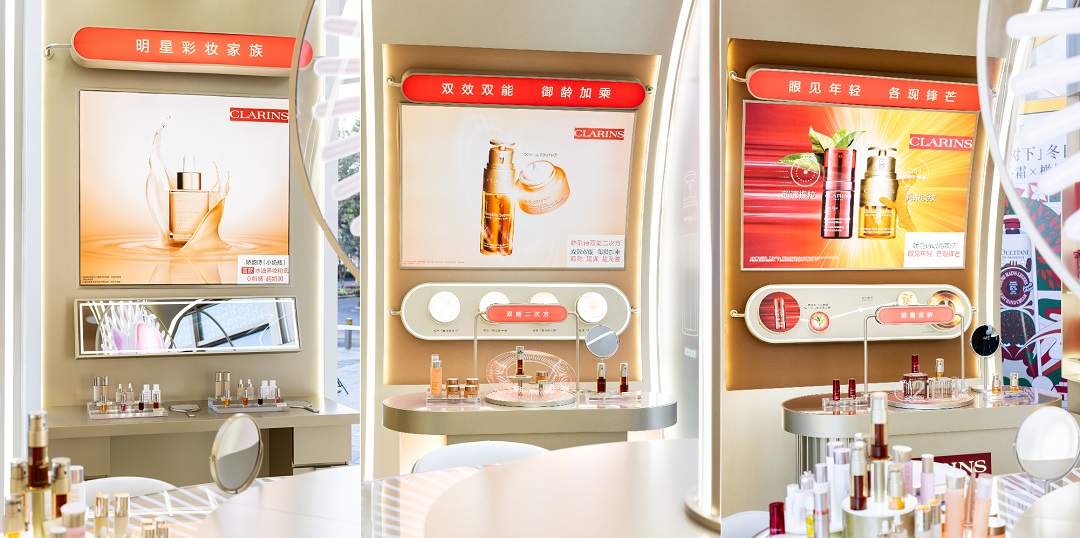快閃店內(nèi),眾多嬌韻詩經(jīng)典暢銷產(chǎn)品環(huán)繞全場,組成雙能CP區(qū)、眼部護(hù)理區(qū)、彩妝區(qū)與煥白加速站四大區(qū)域,消費(fèi)者可在此直觀了解嬌韻詩多元產(chǎn)品的植萃成分、前沿科技與卓越功效。同時(shí),空間內(nèi)設(shè)有產(chǎn)品體驗(yàn)區(qū)與領(lǐng)樣機(jī),集嬌韻詩多線產(chǎn)品試用、購物與沉浸式互動于一體,展現(xiàn)品牌的領(lǐng)先植萃科技與獨(dú)特魅力。