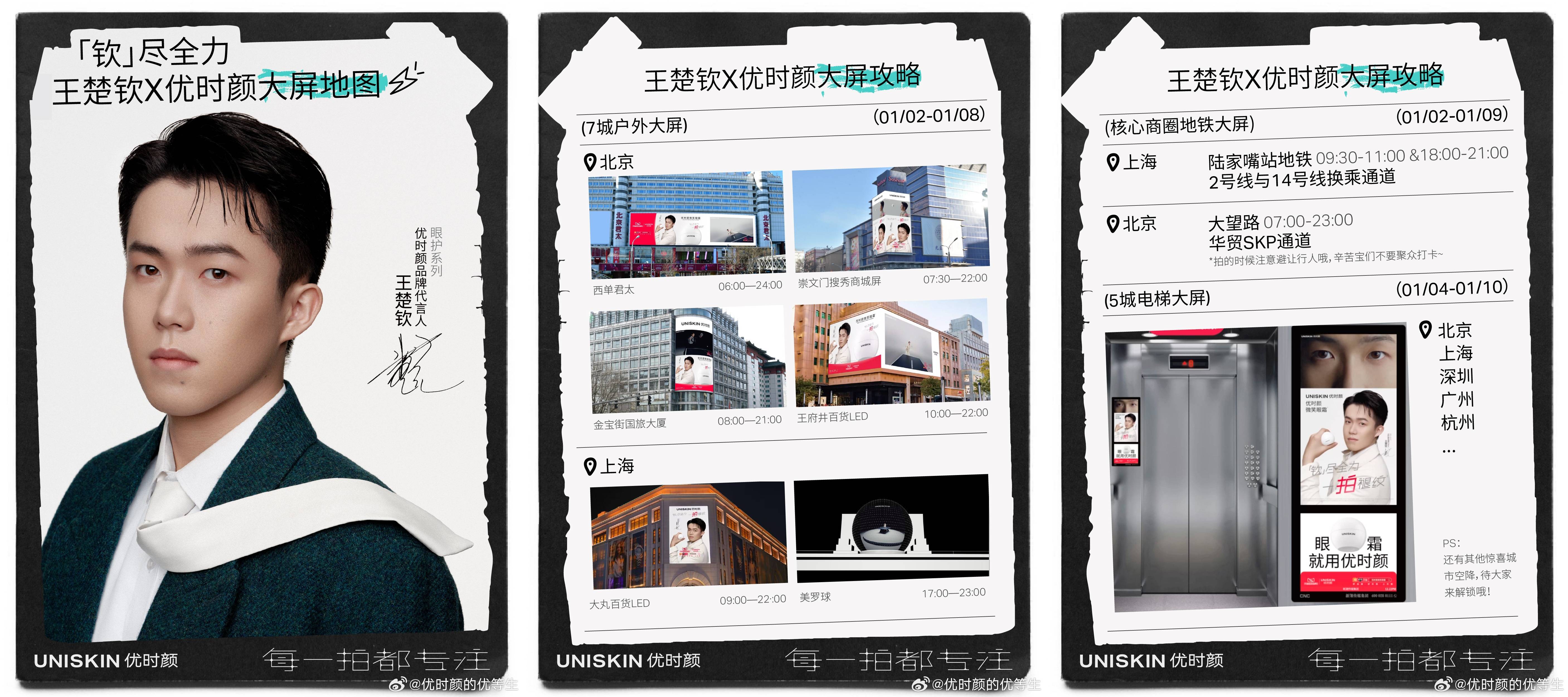 優(yōu)時顏官宣乒乓球 2024 巴黎奧運會混雙冠軍王楚欽(明星代言公司)為品牌代言人。在賽場上,王楚欽揮出的每一拍,背后都是對動態(tài)軌跡和絕對攻防的洞察,專注每一拍,才能成就理想中的答案。不只于看,不止于看,優(yōu)時顏希望通過此次官宣持續(xù)推廣品牌旗下王牌產(chǎn)品——微笑眼霜,幫助無懼風(fēng)向,看得更遠(yuǎn)。代言官宣期間,品牌將在全國各地的商業(yè)中心、地鐵、電梯投放相關(guān)廣告。未來,二者也將繼續(xù)「欽」盡全力,全力以赴每一程。