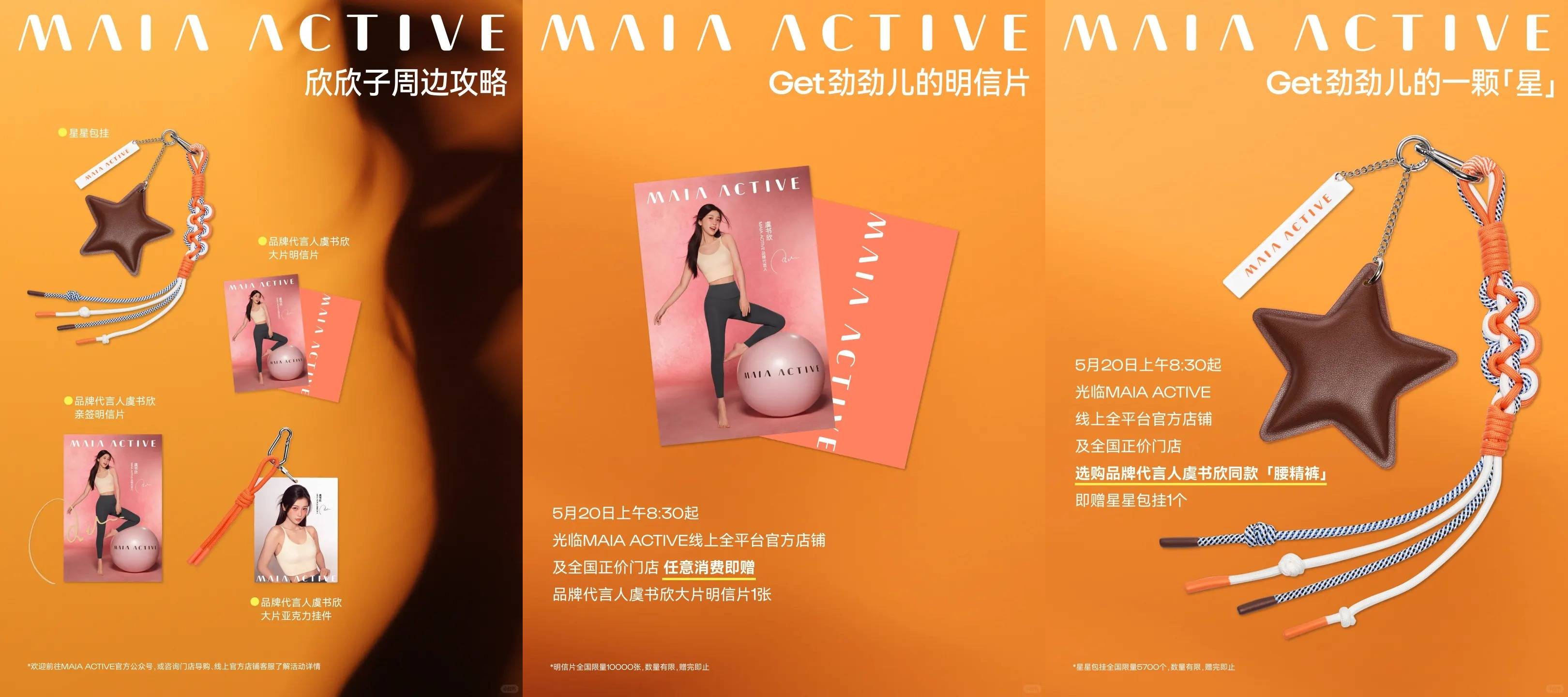 此外,5 月 20 日上午 8:30 起,光臨 MAIA ACTIVE 線上全平臺官方店鋪及全國正價門店,任意消費即贈品牌代言人虞書欣大片明信片 1 張,選購品牌代言人虞書欣同款「腰精褲」還將獲得星星包掛 1 個,演繹有勁女孩就是閃亮的星!