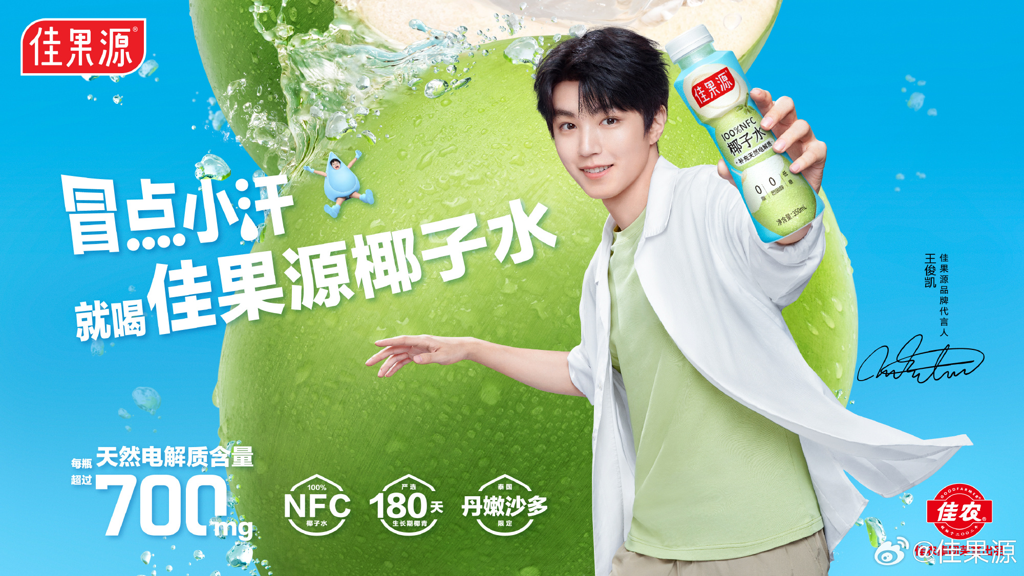 近日,佳果源官宣王俊凱(明星代言公司)成為品牌代言人,一同解鎖夏天新鮮暢飲體驗(yàn),將天然與活力分享給更多人。同期,佳果源推出 100% NFC 椰子水新品,為夏日出行補(bǔ)充天然電解質(zhì)。