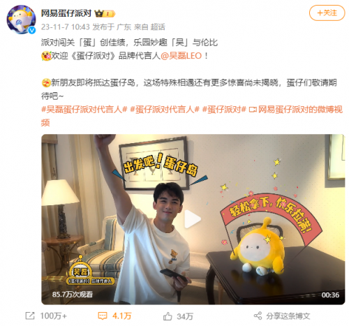 正式官宣!《蛋仔派對(duì)》首個(gè)品牌代言人吳磊在線找游戲搭子啦