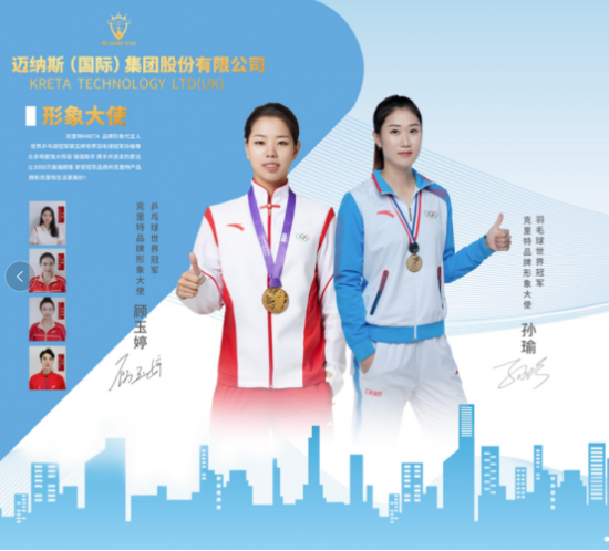 邁納斯(國際)集團股份有限公司宣布羽毛球世界孫瑜(明星代言公司)、乒乓球世界,顧玉婷(明星代言公司)、蹦床世界,涂瀟(明星代言公司)、跳水世界,劉甜(明星代言公司)、跳水世界,連婕(明...