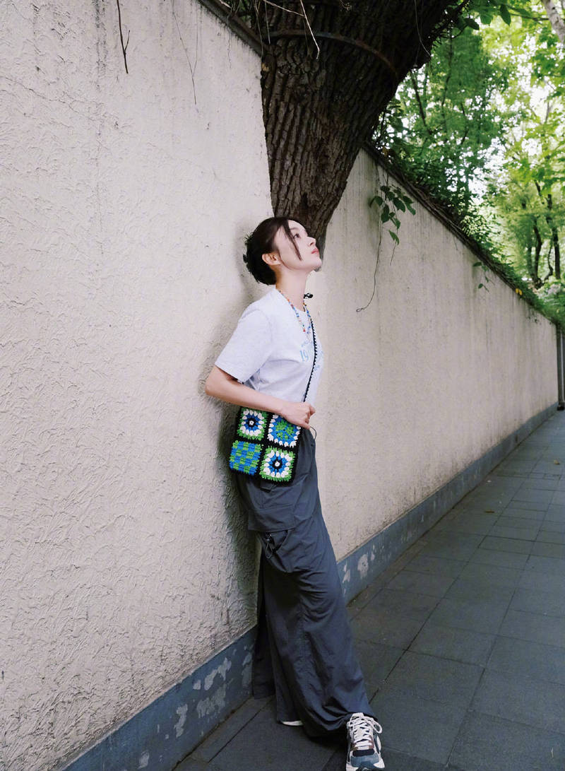 袁姍姍分享夏日街拍 白T搭配闊腿褲清新活力