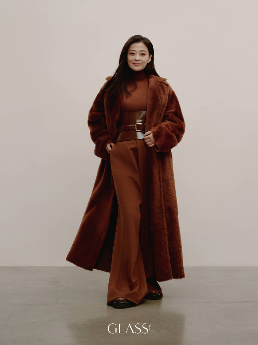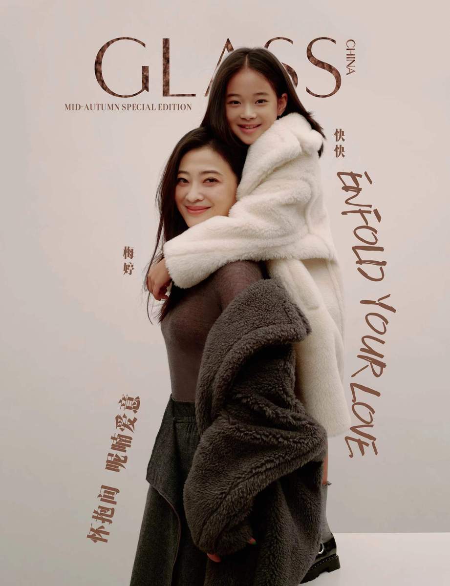 梅婷和女兒同穿毛呢大衣,摟抱女兒溫柔慈愛。