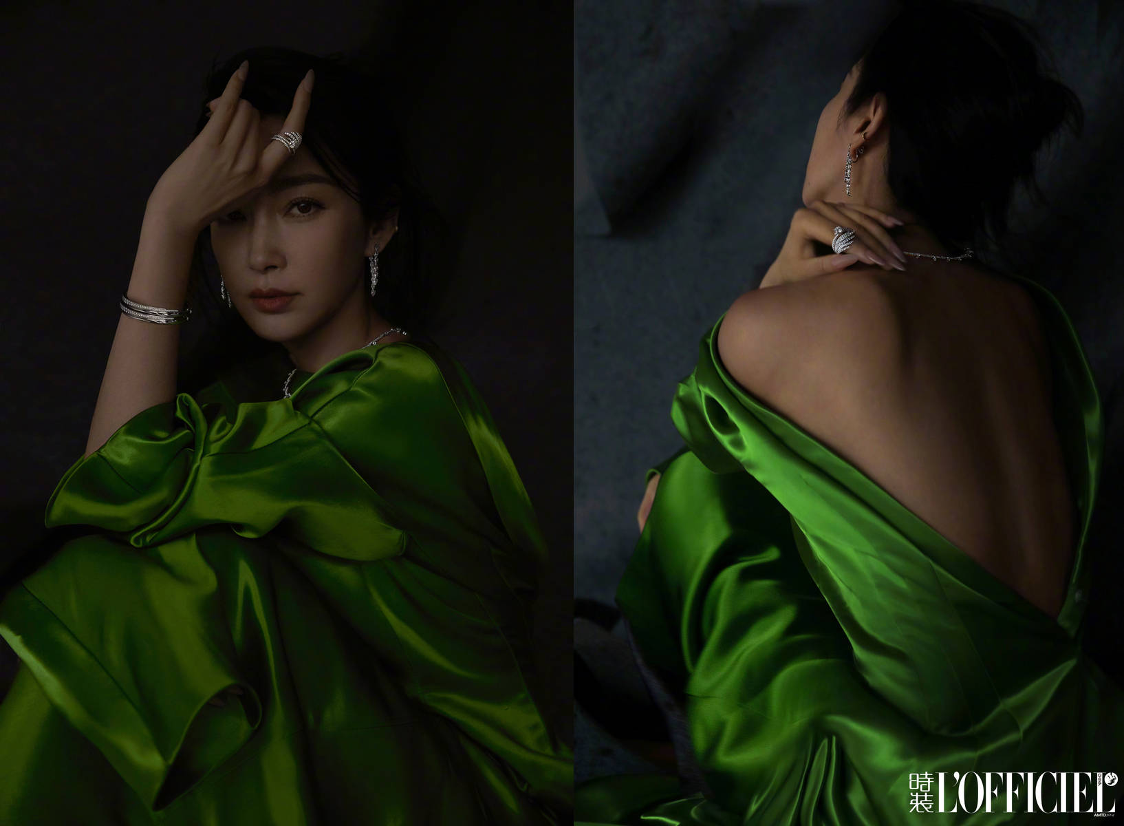 9月27日,李冰冰寫真釋出,綠色絲緞長裙,面紗掩面拂動,多種風格駕輕就熟,嫵媚似青蛇。