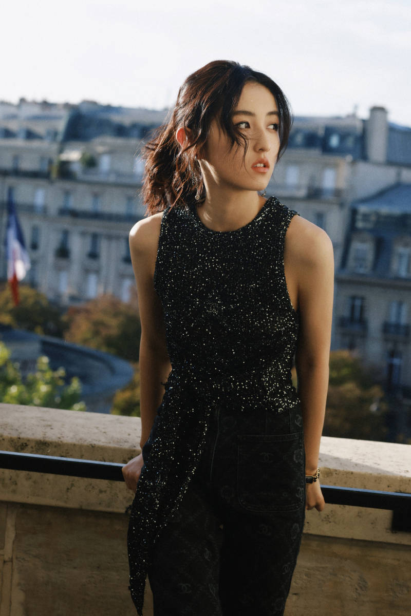 張子楓穿亮片背心青春靚麗 陽臺上玩轉(zhuǎn)法式慵懶風(fēng)