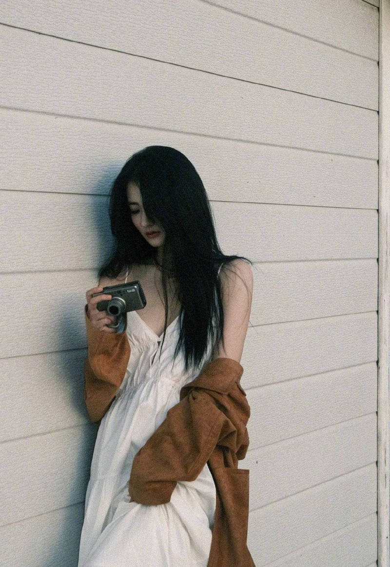 徐璐深V長(zhǎng)裙小秀性感 烏絲及腰演繹清冷白月光
