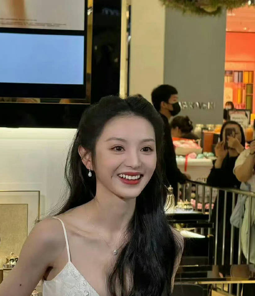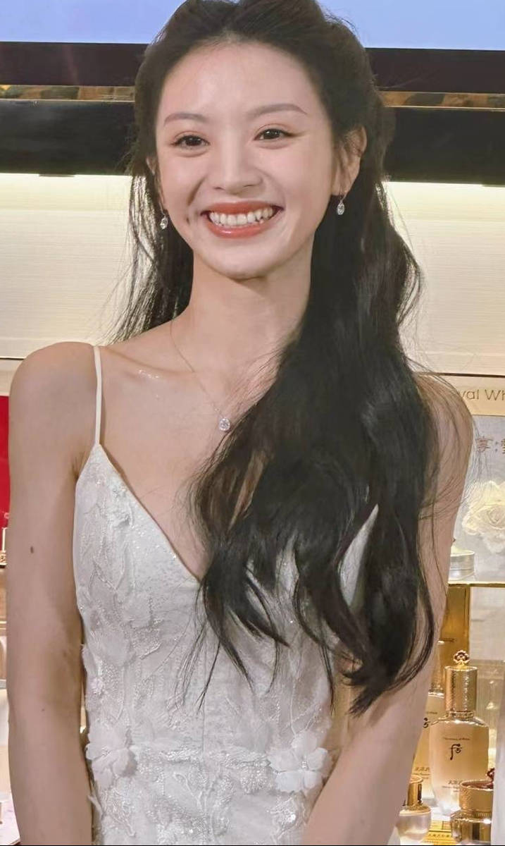 田曦薇站在人群中白到發(fā)光。