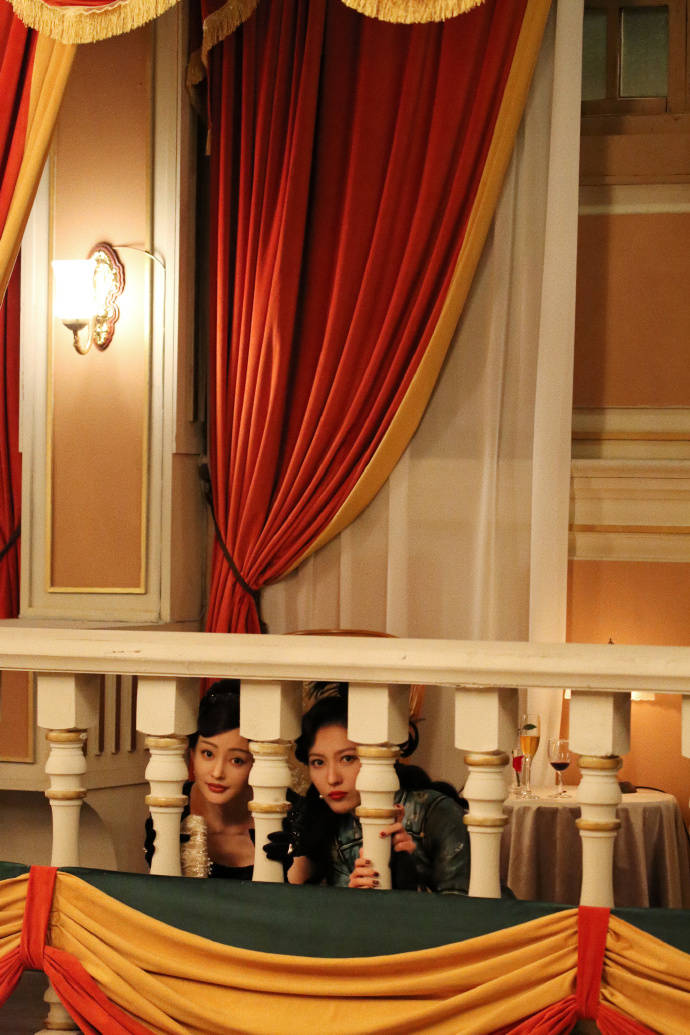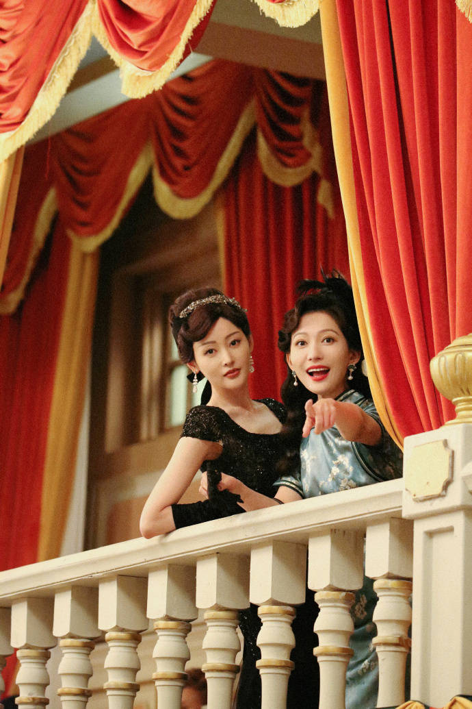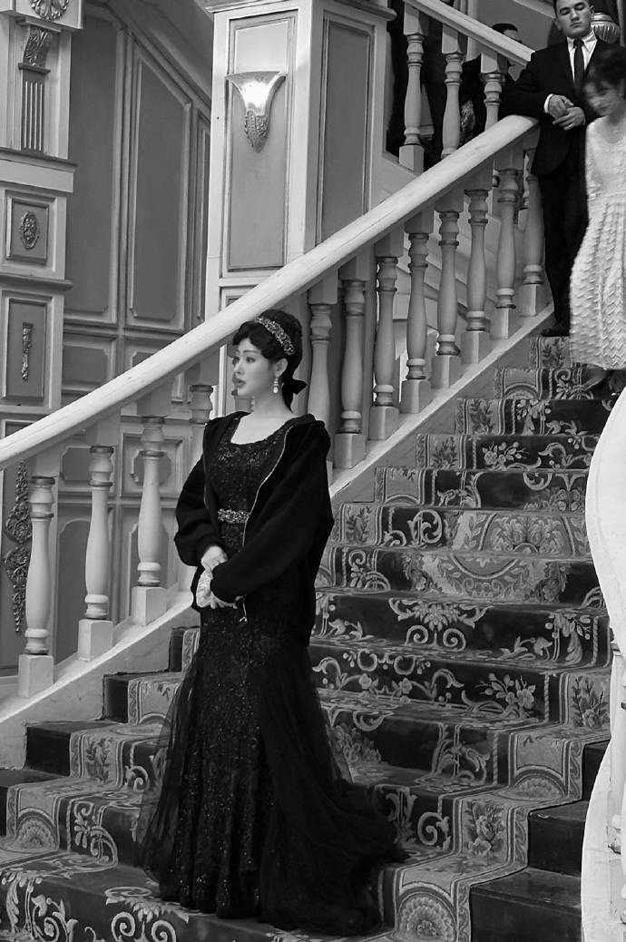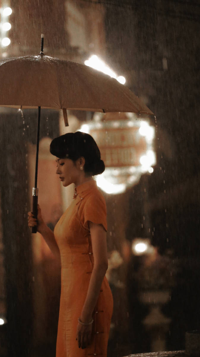 張?zhí)鞇蹠衩駠A麗風(fēng)片場(chǎng)照 雨中撐傘復(fù)古感十足