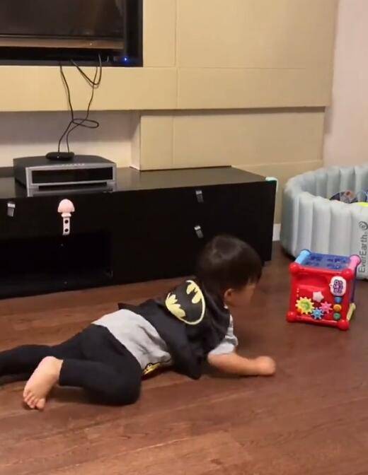 小朋友匍匐在地上。