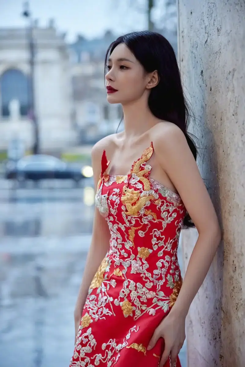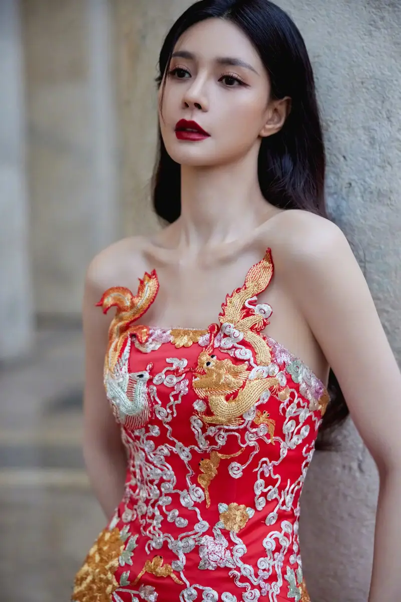 沈夢辰一襲龍紋紅色旗袍 儀態(tài)大方彰顯新中式魅力