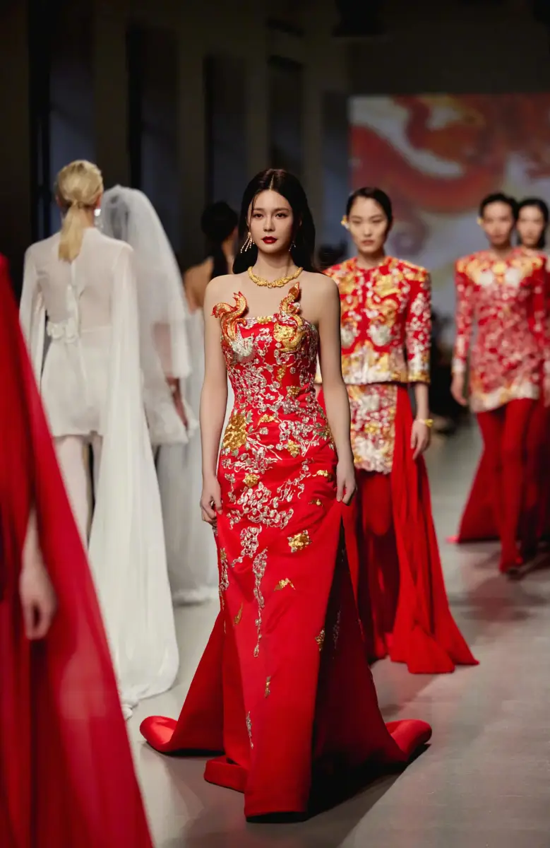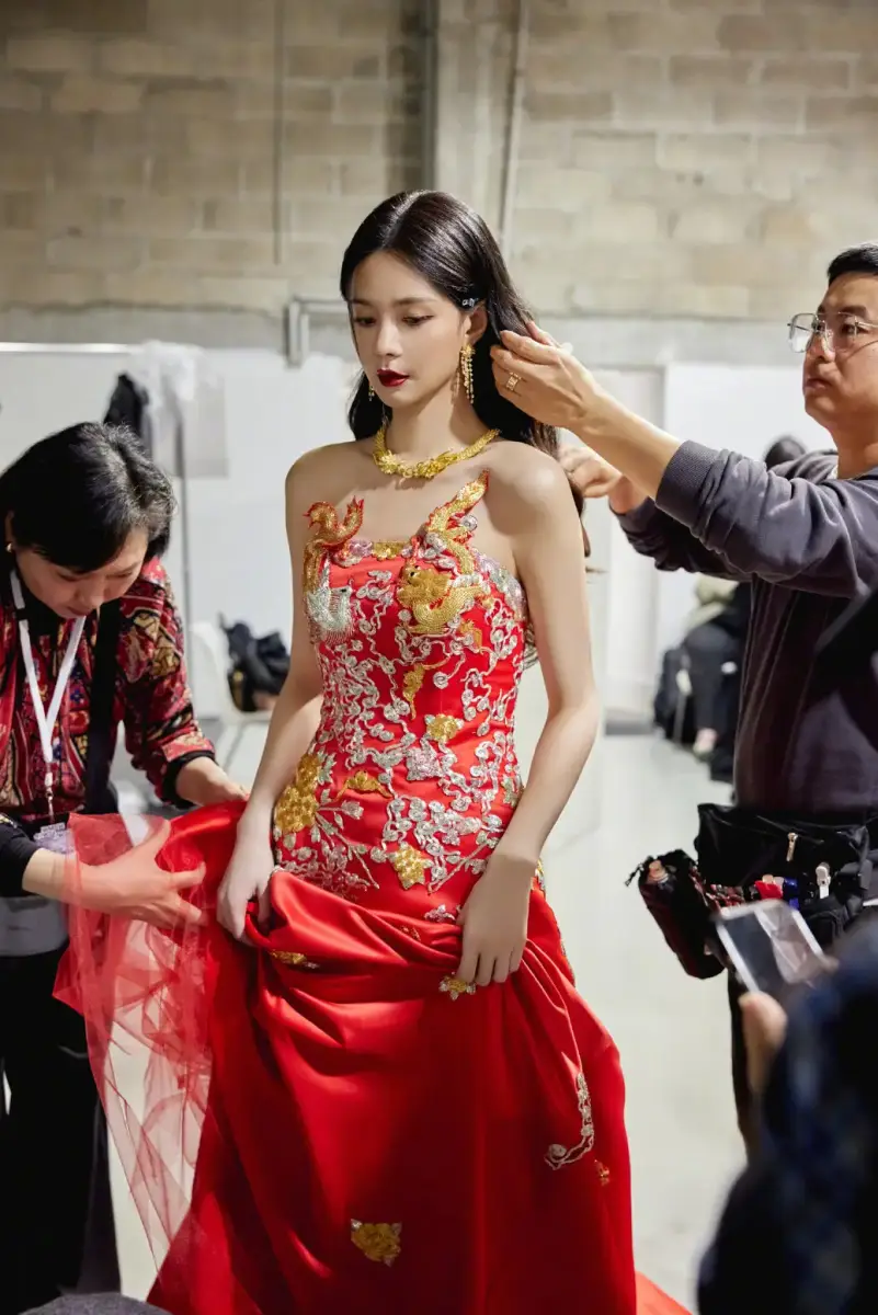 近日,沈夢辰在社交平臺上發(fā)布了一組走秀美圖。沈夢辰(明星經(jīng)紀公司)一襲龍紋正紅色旗袍,彰顯新中式魅力。
