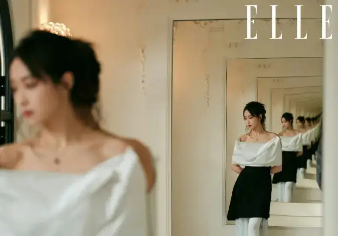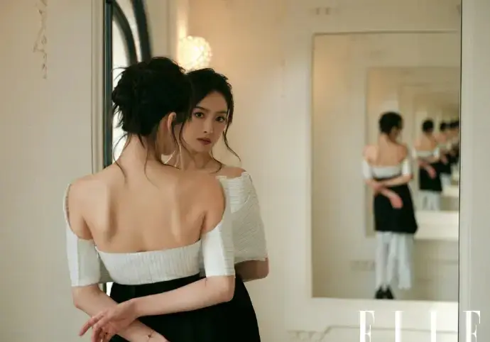 宋茜背對(duì)鏡子,體態(tài)優(yōu)美。