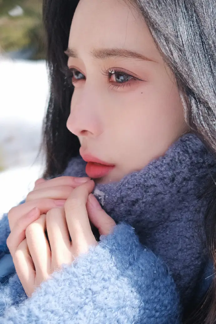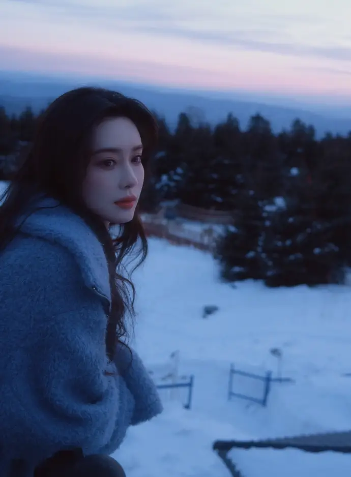 孟子義曬沈月鏡頭下的自己 在雪地中清冷感十足