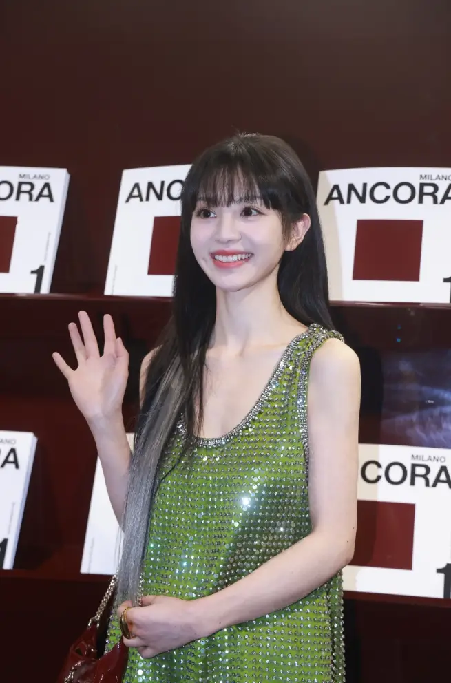 倪妮身穿熒光綠流蘇大衣,氣場全開,優(yōu)雅高貴。