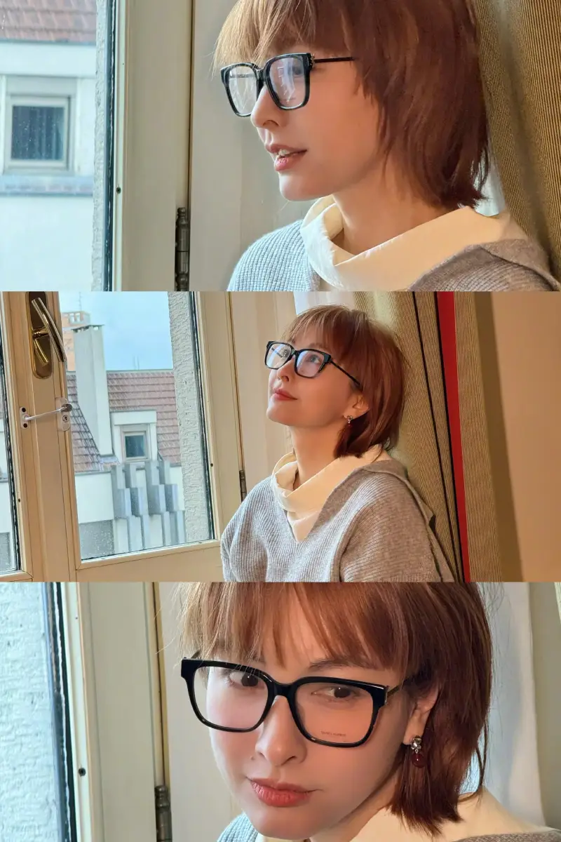 吳昕染金發(fā)燙卷毛可愛俏皮 短發(fā)戴黑框眼鏡似少女