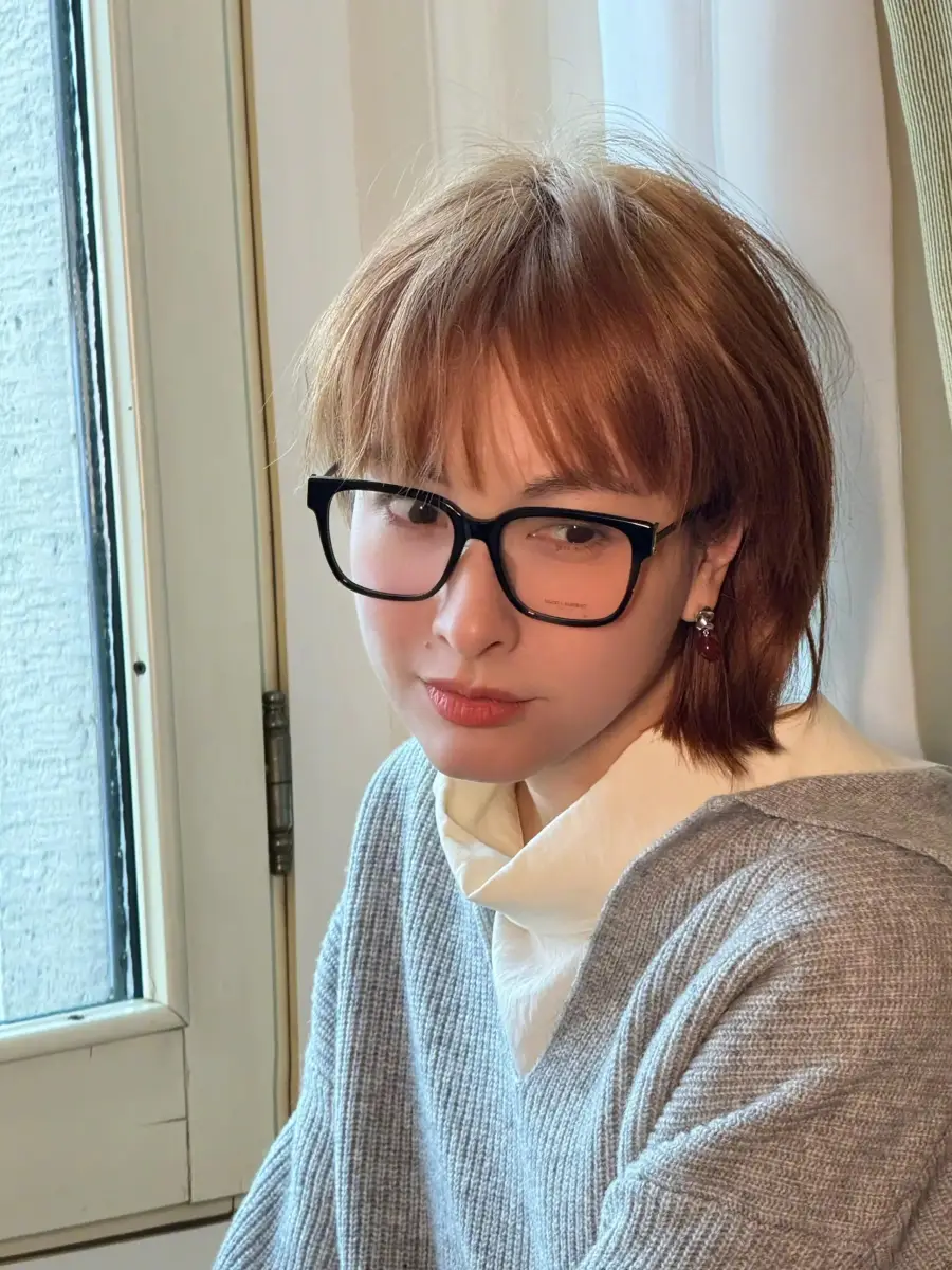 近日,吳昕(明星經(jīng)紀(jì)人)分享了一組自己金色卷發(fā)造型的照片,十分俏皮可愛,戴黑框眼鏡似少女。