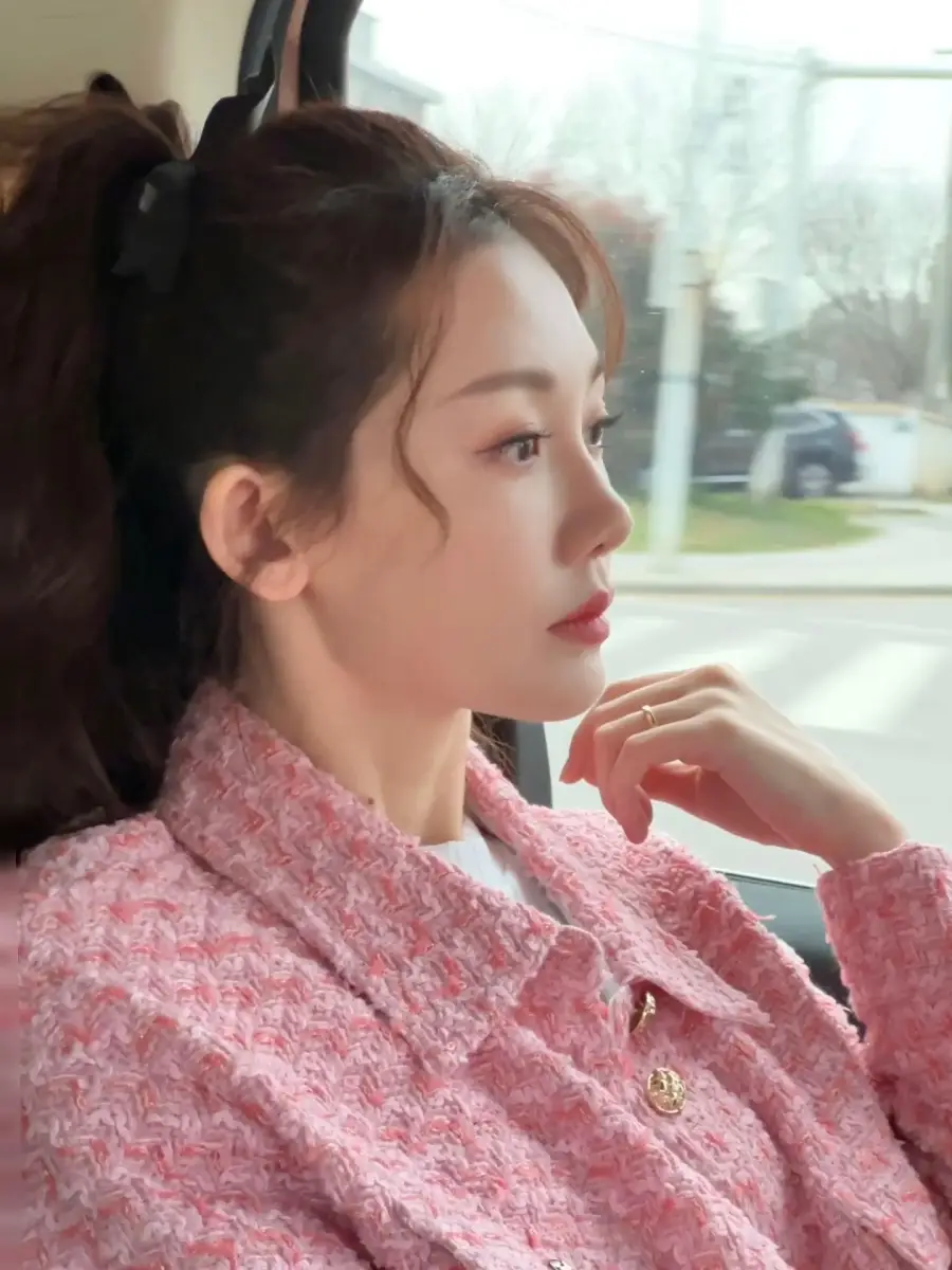 苗苗穿粉色小香外套甜美精致 扎高馬尾少女感十足