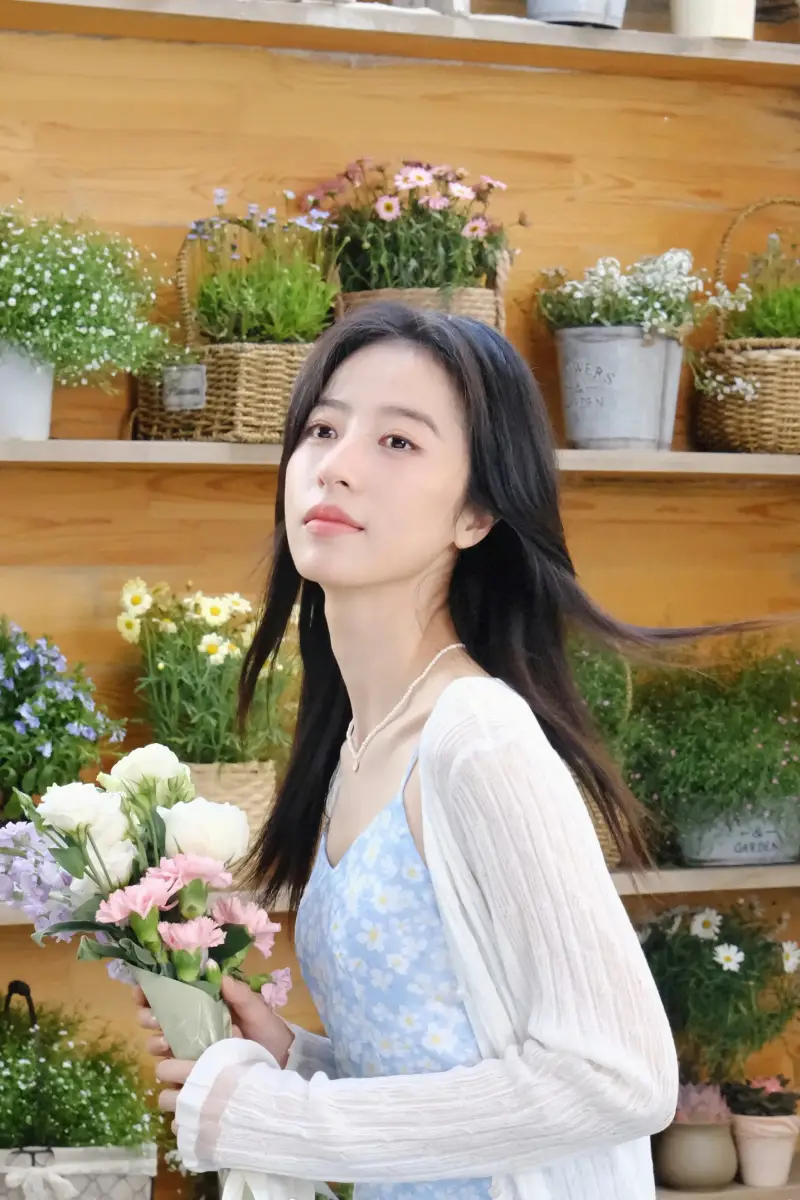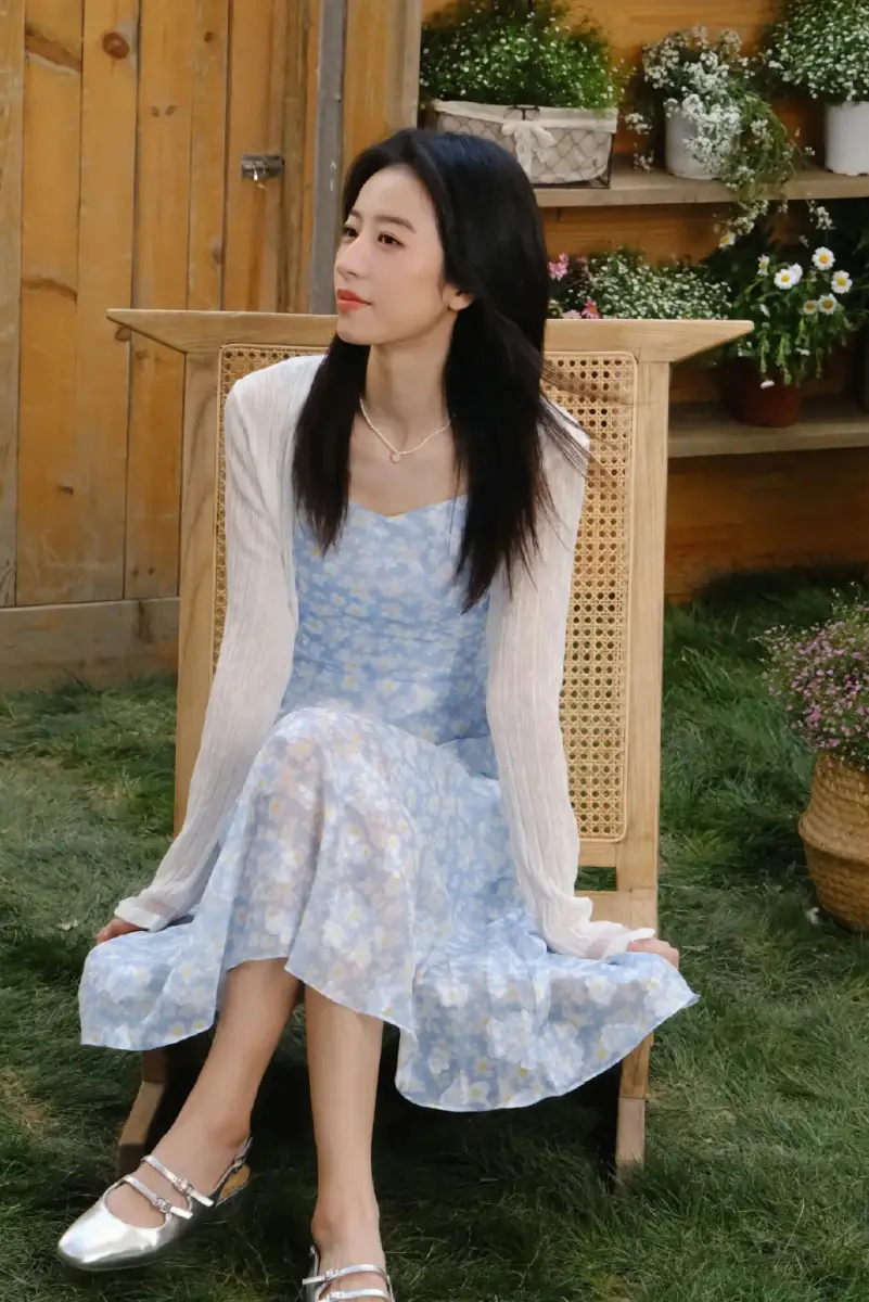 4月24日,周雨彤一組居家美照釋出。穿藍色裙子搭配白色針織衫的周雨彤頗有一種小家碧玉之感。