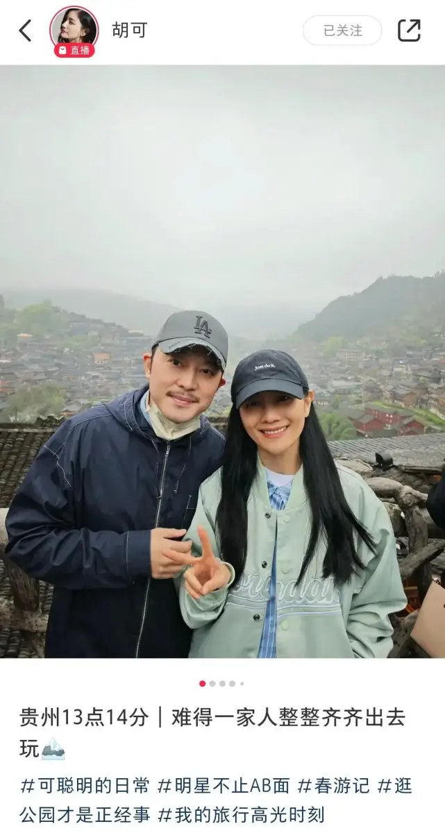 4月27日,胡可曬出一組全家在貴州游玩的合影。照片中,一家四口公開同框,幸福美滿。