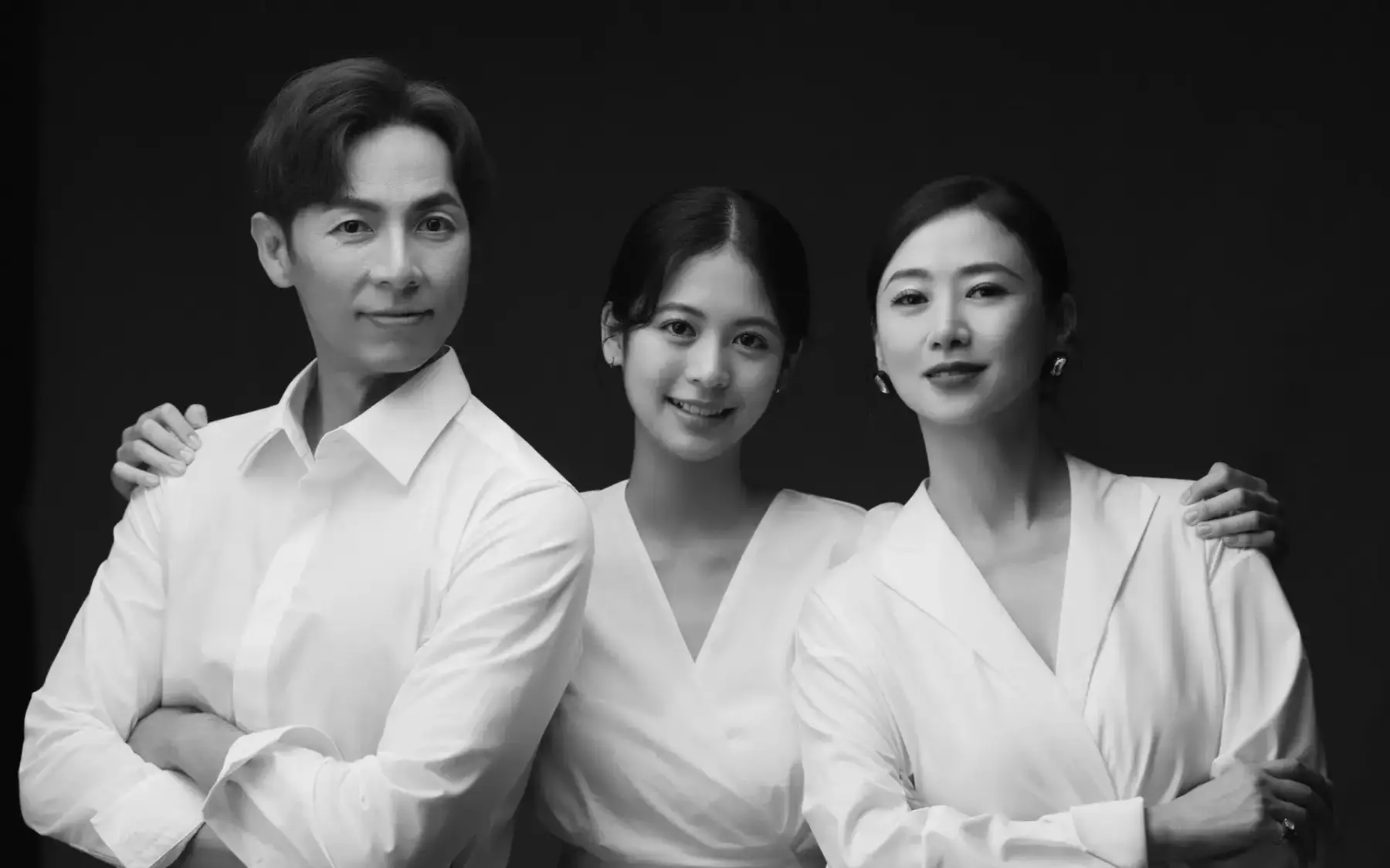 翁虹女兒站在父母中間,面露溫柔笑容,漂亮極了。