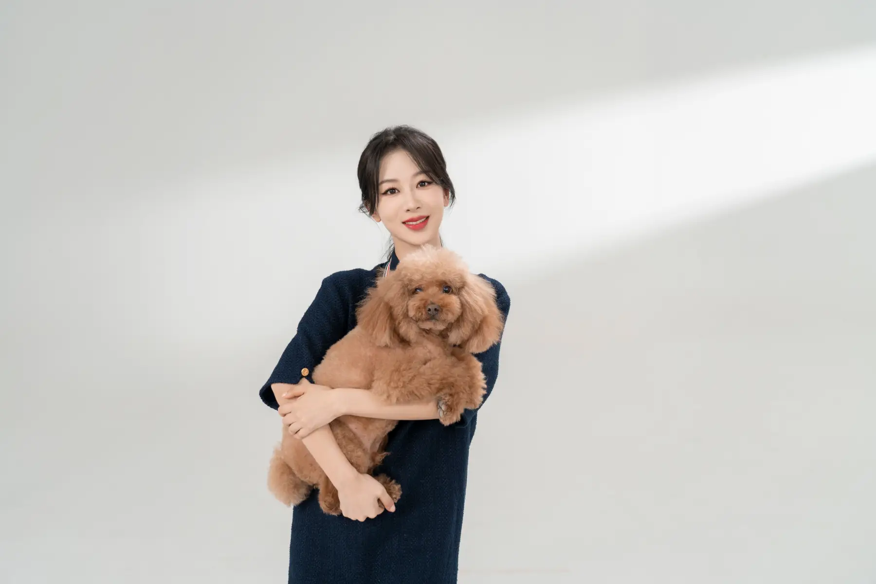 楊紫學(xué)院風(fēng)造型嬌俏淑女 懷抱寵物狗鄰家感十足