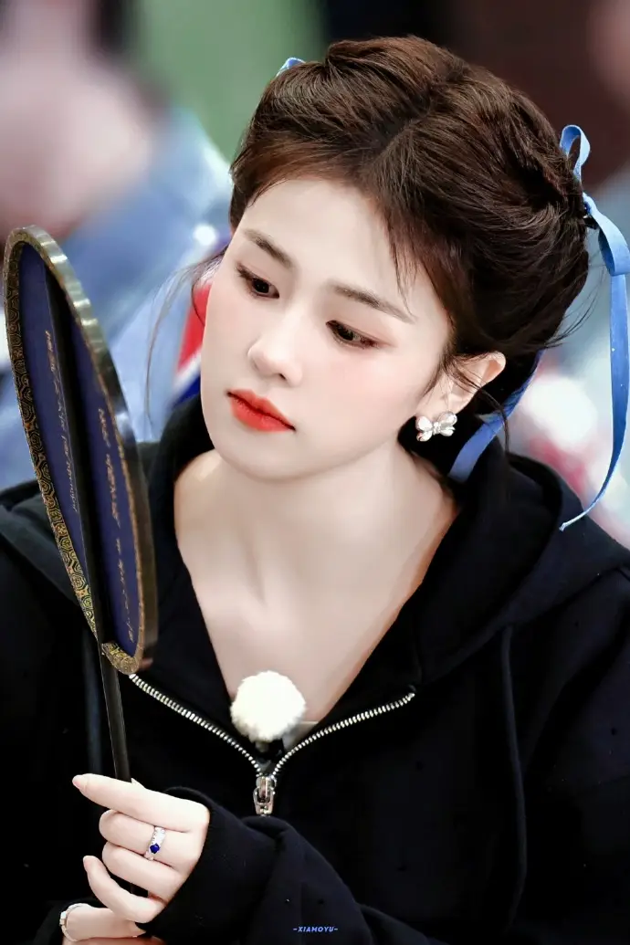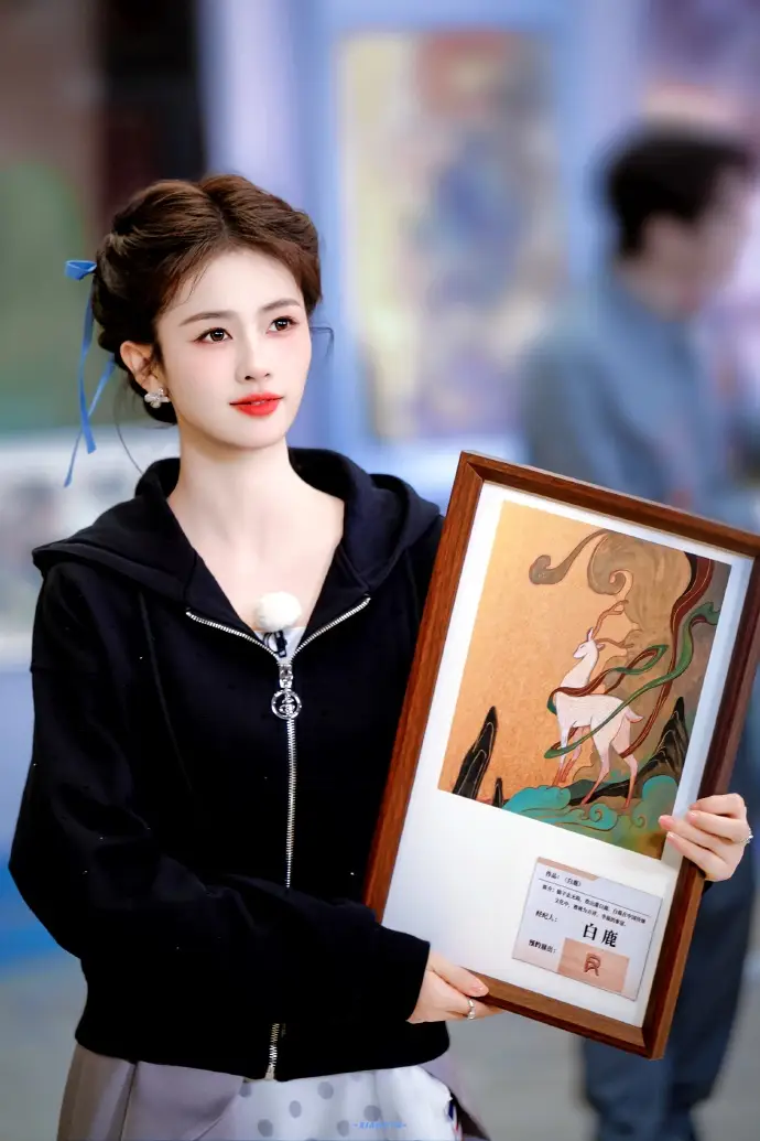 白鹿與白鹿畫作同框 梳俏皮盤發(fā)少女感滿滿