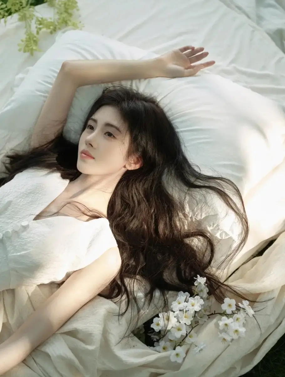 鞠婧祎長發(fā)飄飄,氣質(zhì)突出。