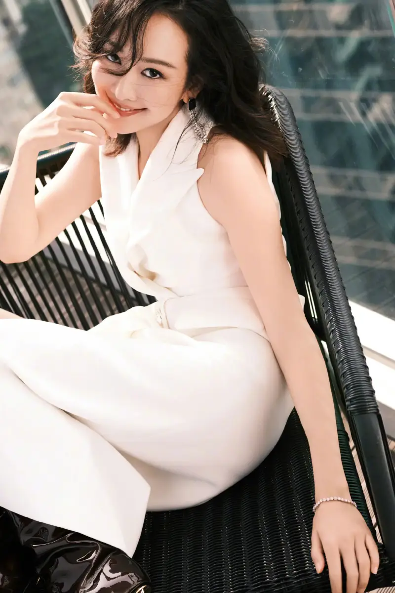 王鷗身著白色無袖長裙勾勒曼妙身姿。