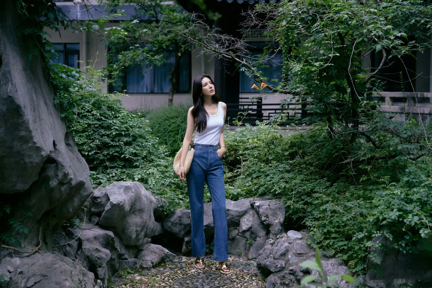 曾黎穿白T牛仔褲秀好身材 干凈利落簡約大氣