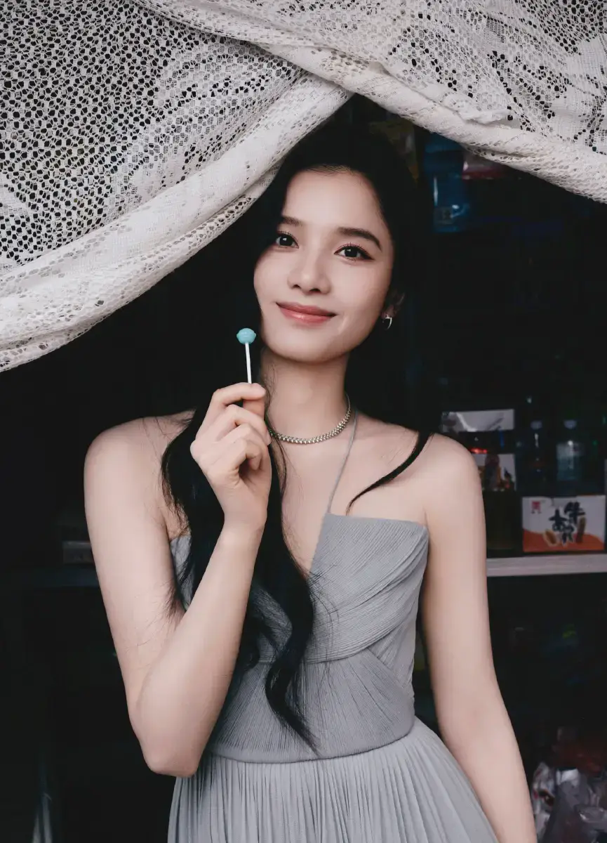 張婧儀灰色紗裙造型飄渺靈巧 漫步小巷似快樂(lè)精靈