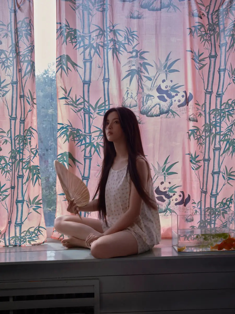 楊超越坐在窗邊搖蒲扇,秀發(fā)飛揚,美貌在線。