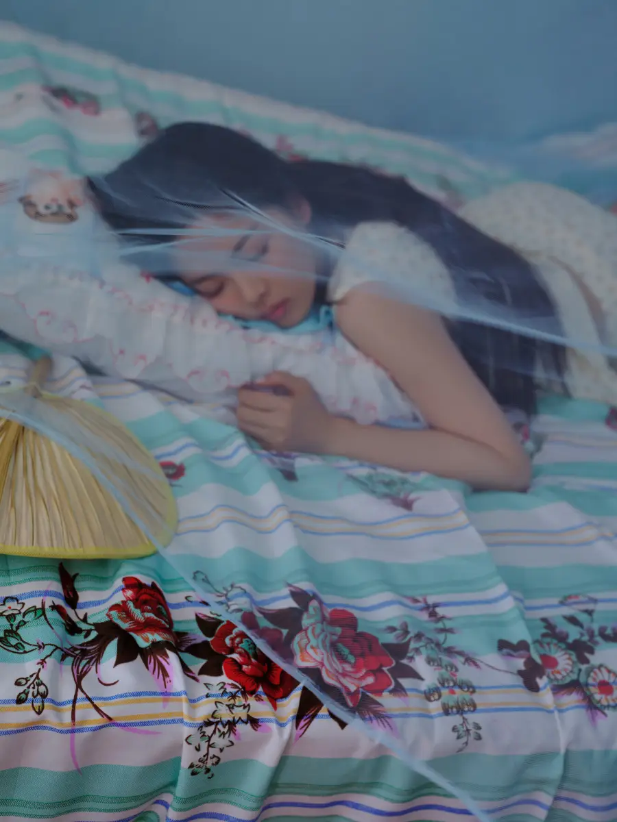 楊超越坐在床上發(fā)呆,可愛少女感滿滿!