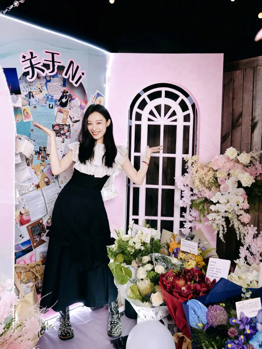 倪妮曬36歲慶生照 打卡生日花墻笑眼彎彎