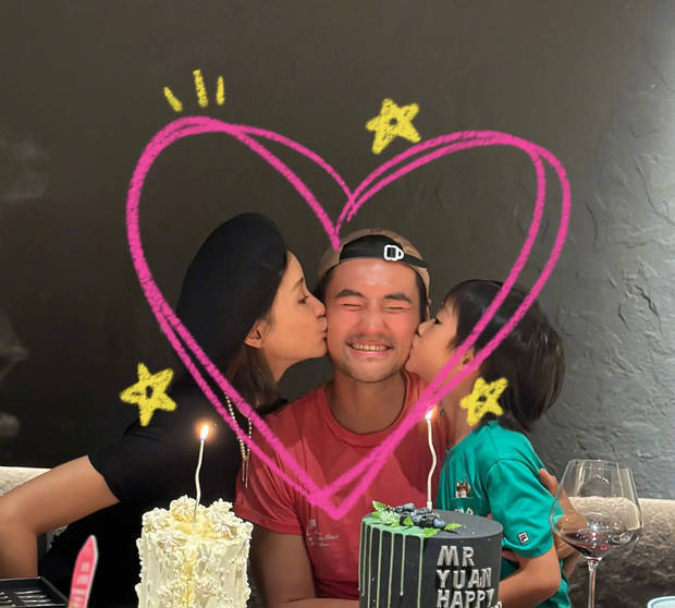 此前,袁弘與兒子一起為張歆藝慶祝生日。