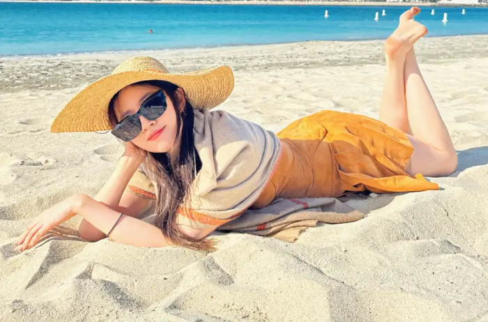 劉亦菲海邊沙灘美照曝光!穿黃色抹胸短裙秀好身材