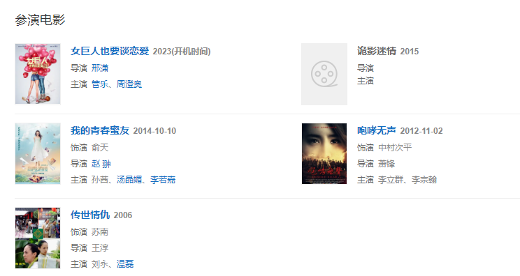 代表作品:倚天屠龍記、如意、因為愛情有多美、把愛帶回家、因為愛情有幸福、秦時麗人明月心