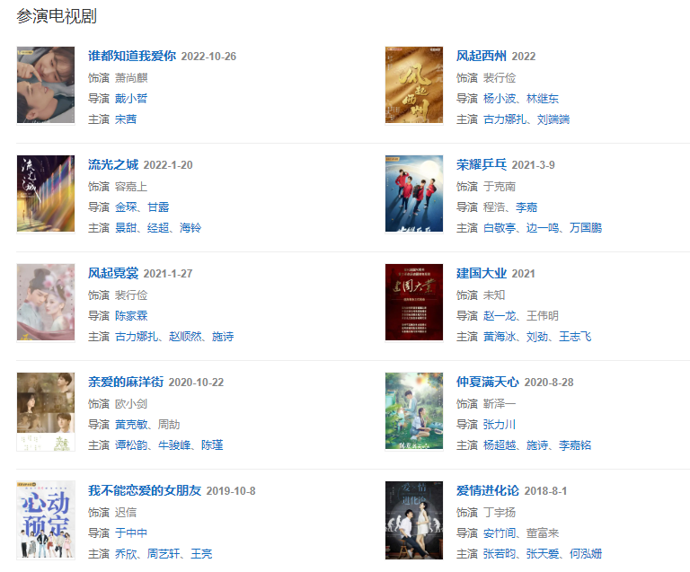 代表作品:我不能戀愛的女朋友、親愛的麻洋街、榮耀乒乓、上癮、塵埃、榮耀、慢慢走