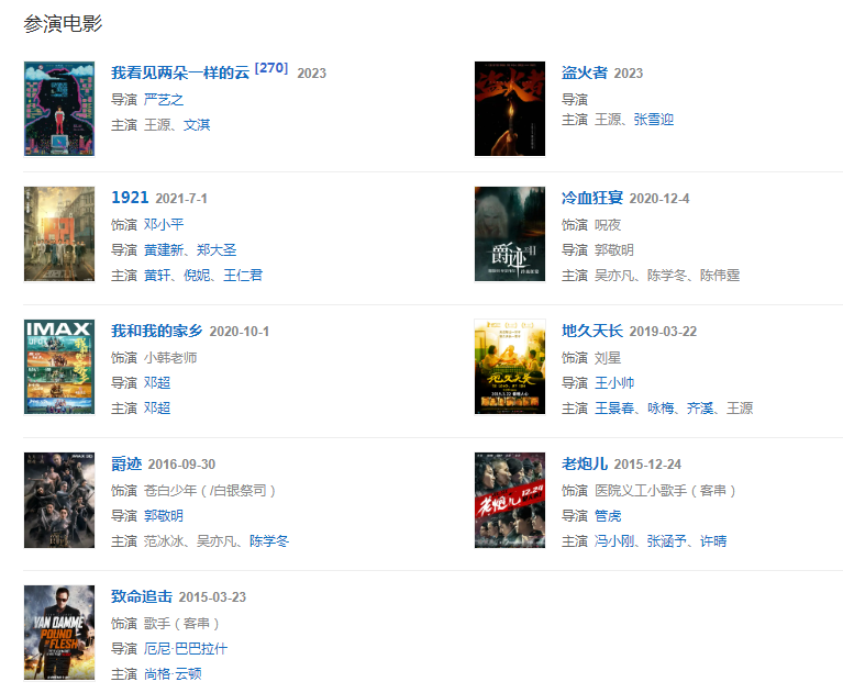 2015年起,開始獨(dú)立作詞作曲;同年,參演電影《爵跡》和電視劇《青云志》。