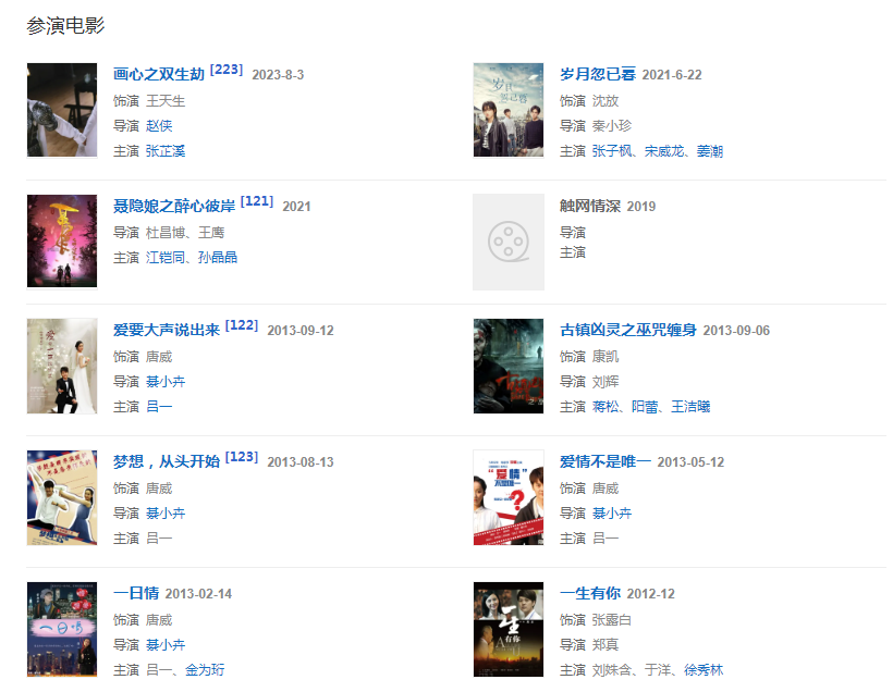 2021622日,友情出演的青春校園電影《歲月忽已暮》在愛奇藝、騰訊視頻雙平臺播出 ;參演電視劇《當家主母》。