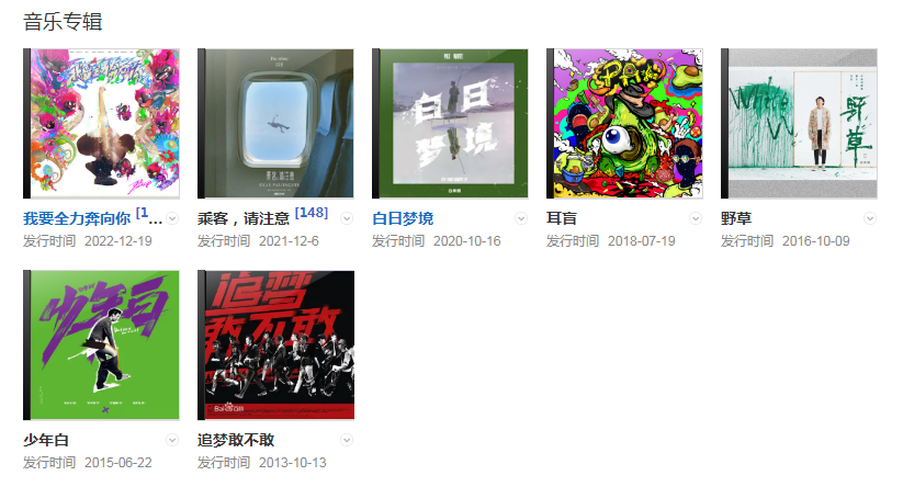 2015年,獲得“第15屆音樂風(fēng)云榜年度盛典”最佳新人獎;同年,推出首張個(gè)人音樂專輯《少年白》。