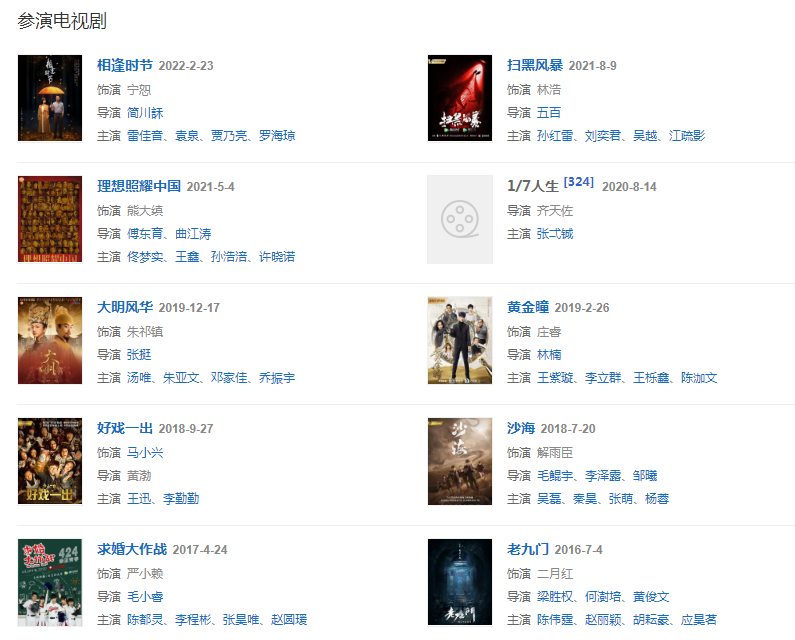 代表作品:一個(gè)人、祈愿、獨(dú)角戲、LOSE CONTROL、SHEEP、夢(mèng)不落雨林、HONEY、蓮、老九門(mén)、好先生、掃黑風(fēng)暴、黃金瞳、一出好戲
