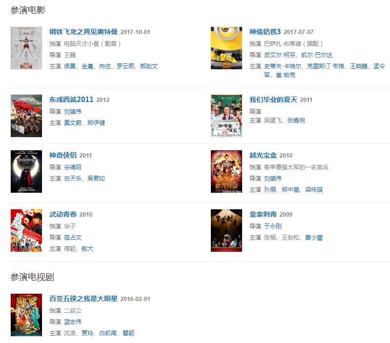 2017年首次參與影視配音,獻(xiàn)聲《神偷奶爸3》中的大反派巴薩扎·布萊德。